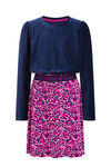 Een regular fit jurk van corduroy met een dessin en elastische tailleband met glittergaren. Het model heeft een ronde hals en lange mouwen.