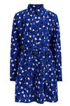 Een regular fit jurk van geweven kwaliteit met een dessin en een ceintuur. Het model heeft ronde hals, lange mouwen en een knoopsluiting.