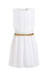 Een regular fit jurk van gerecycled polyester met plooien op de bovenkant, een all-over structuur en pailletten bij de elastieke tailleband. Het model heeft een ronde hals met een knoopsluiting.