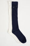 Een set van twee paar fijngebreide kniekousen van katoenmix met geribde boorden.