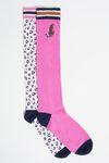 Een set van twee paar fijngebreide kniekousen van een katoenmix met geribde boorden.