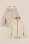 Voor kids die niet kunnen kiezen én dat ook niet hoeven. Deze jas heeft een regular fit, lange mouwen en een capuchon. De gladde kant heeft een waterafstotende coating en met een zachte imitatiebontkant is het een jas voor elk humeur en elke temperatuur.