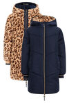 Deze jas kun je aan twee kanten dragen. De ene kant heeft een gewatteerde look en de andere kant is van imitatiebont met een dessin. Het model heeft een capuchon, ritssluiting met kinbeschermer en twee steekzakken met een drukknoopsluiting.