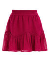 Een regular fit rokje van geweven kwaliteit met een dessin en volants. Het model heeft een gesmokte tailleband.