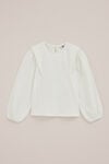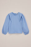 Op zoek naar een ademende look? Deze seersucker blouse heeft een regular fit, ronde hals en lange ballonmouwen met elastiek, en is afgewerkt met een fijne structuur en een knoopsluiting op de rug.
