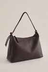 Deze leren schoudertas heeft een geknoopt, verstelbaar hengsel dat stijlvol is opgesplitst in twee slierten, een veilige ritssluiting en een ruim shopperformaat met twee binnenvakjes, een met rits en een zonder.