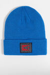 Een fijngebreide beanie van een gerecycled polyester blend.