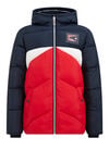 Een regular fit jas van gerecycled polyester met colourblock en twee steekzakken met drukknoopsluiting. Het fleecegevoerde model heeft een capuchon met fleecevoering en ritssluiting. De jas heeft een binnenzak en naamlabel.