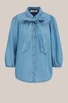 Netjes, maar niet saai. Deze blouse heeft ballonmouwen, een regular fit, knoopsluiting en een kraag met strikdetail in soepel denim. Stoer genoeg voor kantoor, leuk genoeg voor daarna. Precies zoals het hoort.