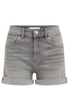 Een 5-pocket short van gewassen, katoenen stretchdenim met een hoge taille en ietwat wijdere pijpen met een omslag onderaan. De short heeft een knoop- en ritssluiting.