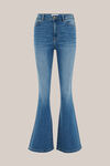 Zeg hallo tegen je meest flatterende fit. Deze super flared jeans zit hoog in de taille, sluit mooi aan op het bovenbeen en loopt wijd uit voor een vrouwelijk en krachtig silhouet. De lichte wassing op de pijpen geeft ‘m een moderne, effortless look. Afgewerkt met vijf zakken en een knoop met ritssluiting.