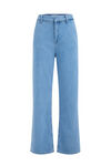 Een high rise chino van denim katoenmix met twee steekzakken en twee paspelzakken. Het model heeft wijde pijpen en een haak-, knoop- en ritssluiting.