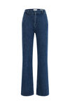 Een high rise chino van denim katoenmix met twee steekzakken en twee paspelzakken. Het model heeft wijde pijpen en een haak-, knoop- en ritssluiting.