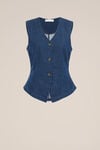 Maak elke outfit gemakkelijk af. Dit mouwloze gilet heeft een slanke pasvorm, een diepe V-hals en drie knopen die samen zorgen voor een stijlvolle uitstraling.