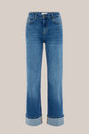 Onmisbaar in je garderobe. Deze 5-pocket wide leg jeans met hoge taille, lichte wassing en omslag onderaan geeft je die moeiteloos stijlvolle look. De knoopsluiting, riemlussen en wijde pijpen maken 'm af.