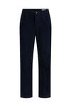 Een relaxed fit chino van een katoenmix met twee steekzakken en twee paspelzakken. Het corduroy model heeft wijde pijpen en een knoop- en ritssluiting.