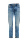 Een 5-pocket Blue Ridge-jeans van jog denim met een slim fit, een lichte wassing en een knoopsluiting. Het model heeft een normale taille met smalle pijpen.