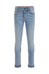Deze Blue Ridge jeans heeft een regular fit en is gemaakt van een denimkatoenmix met stretch. Dit 5-pocket model heeft een normale taille met rits- en knoopsluiting en verstelbaar elastiek in de taille. De taps toelopende pijpen kan je omslaan, zodat een tapedetail zichtbaar wordt. Tot maat 128 heeft een haaksluiting.