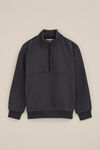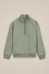 Stoer, zacht en helemaal z’n stijl. Deze sweater van stevige poplin katoen heeft een regular fit, een opstaande kraag met halve rits, lange mouwen met ribboorden, een borstzak én een handige buidelzak.