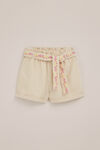 Een must-have voor elk meisje. Deze high waist short is gemaakt van 100% katoen en heeft rechte pijpjes die veel bewegingsvrijheid geven. De elastische tailleband met strikceintuur zorgt voor een fijne pasvorm, en de vrolijke all-over print maakt ‘m extra leuk.