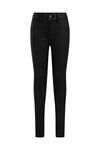 Een Blue Ridge super skinny fit jegging van een viscosemix met toegevoegde stretch, een rits- en knoopsluiting, twee sierzakken op de voorkant en twee steekzakken op de achterkant. Dit gecoate model heeft een normale taille met extra smalle pijpen. Tot maat 128 heeft een haaksluiting.