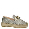 Fred de la Bretoniere June Li dames loafer. Een unieke loafer door de mooie stof en de statement ketting die op wreef van de loafer zit. Uitgevoerd in stevig textiel. Gevoerd met leer dat er met zijn ademend vermogen voor zorgt dat de loafer langer fris blijft. Het voetbed heeft een zacht kussen dat een fijne demping biedt tijdens het lopen. Voorzien van een rubberen loopzool die afgewerkt is met touw voor een ultieme zomerse look.