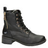 Mustang dames veterboot. Met deze stoere veterboot van het merk Mustang creeer je een bold look onder elke outfit! Uitgevoerd in imitatieleer met gouden details. De toevoeging van de rits zorgt ervoor dat je de boots snel aan kunt trekken. Gevoerd met zahcte fleece-stof wat uiterst comfortabel aanvoelt en de voeten warm houdt op de frissere dagen. Het voetbed is een combinatie van imitatieleer en fleece. De foamlaag zorgt voor fijne demping, zo loop je de hele dag comfortabel rond.
