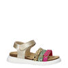 Nelson meisjes sandaal. Met deze sportieve sandaal kun je lekker buiten spelen op warme dagen. Uitgevoerd met imitatieleer en leer. Doordat alle banden apart te verstellen zijn kan de pasvorm geheel naar wens aangepast worden. Gevoerd met zacht textiel om de enkel en suède over de voet. Deze zachte materialen bieden een fijn draaggevoel.