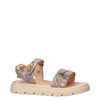 Nelson meisjes sandaal. Laat je voeten stralen deze zomer met deze hippe sandalen voorzien van een vrolijke, kleurrijke metallic print! De buitenkant is vervaardigd uit geprint suède, wat niet alleen een luxe uitstraling geeft maar ook zacht en soepel om de voet sluit. Dankzij de drie klittenbandsluitingen kan de pasvorm perfect afgesteld worden.
