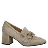 Nelson dames pump. Klassieke dames pump van ons eigen merk. Door de ketting op de wreef van de pump krijgt deze een luxe uitstraling. De pump heeft een hoog silhouet met een gesloten neus gemaakt van suede, waardoor het een klassieke en vrouwelijk uitstraling krijgt. Gevoerd met leer voor een ademend vermogen. Ook het voetbed is van leer voor een aangename pasvorm. Voorzien van een rubberen loopzool.