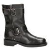 Nelson dames boot. Stoere en trendy laars die geïnspireerd is op het klassieke motorrijder-ontwerp. Deze bikerboot voegt een edgy en rebelse uitstraling toe aan elke outfit. Uitgevoerd in leer en voorzien van twee lederen gespen. De binnenvoering van de boots is van textiel en leer. Dit werkt vochtobserberend. Het voetbed biedt een fijne demping en ondersteuning tijdens het lopen, waardoor vermoeidheid van de voeten wordt verminderd. Voorzien van een rubberen loopzool.