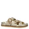 Nelson dames slipper. De chunky slipper is helemaal in dit voorjaar. Dit model van ons private label is dan ook de perfecte keuze! Uitgevoerd in leer met leuk weefwerk op de band. De banden zijn met de glitterende gespen te verstellen voor een betere pasvorm. De banden hebben aan de binnenkant een imitatieleren voering. Voorzien van een voorgevormd voetbed met leren bekleding. Dit voetbed ondersteunt de voetboog. Afgewerkt met een rubberen loopzool met voldoende grip.