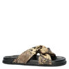 Nelson dames slipper. Kleed je helemaal volgens de laatste trends met deze slippers van Nelson. De banden zijn uitgevoerd in gladleer met metallic of animal print. Voorzien van een leren voetbed met lichte ondersteuning onder de voetboog. Afgewerkt met een rubberen loopzool.