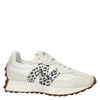 New Balance 327 dames sneaker. Geïnspireerd op de traditionele runners die zijn intreden deden in de jaren 70. De sneakers zijn in een modern jasje gestoken en zijn helemaal hot. Deze sneaker is uitgevoerd in textiel met suede overlays en heeft het iconische New Balance embleem met panter print op de zijkant.