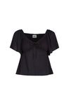 Met een wijde zomerse hals en luchtige fladdermouwen is de geweven top Huges helemaal klaar voor de zomer. De top heeft een regular fit, een verstelbaar stoffen strikje in het midden van de V-hals en verborgen elastiek op de schouders en langs de halslijn. Met een elastische gerimpelde achterkant is dit de ideale keuze voor een zonnige stranddag. Gemaakt van 100% Livaeco-viscose.