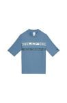 Dit shirt met korte mouwen en een slim fit beschermt jonge surfers tegen UV-stralen met beschermingsfactor UPF 50+, zodat ze veilig kunnen genieten van een surfsessie of een dag op het strand. Het shirt heeft een print op waterbasis op de borst en mouw, en is gemaakt van LYCRA® XTRA LIFE™-stof, waardoor het langer meegaat en beter bestand is tegen de zon, hitte, chloor, zonnebrand en nog veel meer. Dit exemplaar mag niet ontbreken in de kledingkast van jonge surffanaten.