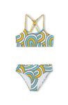 De bikiniset Mix and Match Tropics bestaat uit een klassiek bikinibroekje en een comfortabel bralettetopje met gekruiste gevlochten bandjes en een gehaakt detail op de rug. Het topje is vanaf maat 140 voorzien van uitneembare pads en de bikini is gemaakt van 79% gerecycled REPREVE®-polyester. Een ideale keuze voor alle wateractiviteiten.