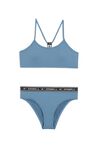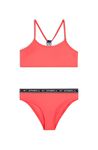 De bikiniset Sportclub is gemaakt om volop te genieten van elke wateractiviteit. Het broekje is voorzien van een elastische tailleband en een sportieve rand met logo's. Het bijpassende bralettetopje heeft vaste bandjes en is vanaf maat 140 voorzien van uitneembare pads in de cups voor de ideale mate van bedekking. Gemaakt met 79% gerecycled REPREVE®-polyester.