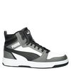 Puma Rebound V6 heren sneaker. Basketbal-schoenen zijn al jaren helemaal hip. Voeg je nu bij de trend en ga voor deze high-top sneakers van Puma. Uitgevoerd in imitatieleer wat gemaakt is van gerecycled materiaal. De Forever Better-lijn van Puma heeft een duurzamer productieproces. Gevoerd met textiel en voorzien gewatteerde enkelkraag voor meer comfort. De schoen heeft door de perforatie op de neus een goede warmteafvoer.