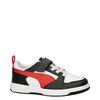 Puma Rebound V6 Low jongens sneaker. Deze retro basketbal sneakers voor de kleintjes zitten super comfortabel en staan lekker hip. Uitgevoerd in imitatieleer met handige elastische veters en een klittenbandsluiting, zodat de schoentjes zelf aangedaan kunnen worden. Het materiaal is gemaakt van gerecycled materiaal. Gevoerd met textiel en voorzien van een gewatteerde enkelkraag voor meer zachtheid tijdens het lopen.