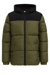 Een regular fit jas van een waterafstotende kwaliteit met colourblock, een ritssluiting en twee steekzakken met drukknoopsluiting. Het model heeft een capuchon en lange mouwen. De jas heeft een binnenzak.