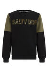 Een regular fit sweater van een katoenmix met embroidery en contrasterende detail op de mouwen. Het model heeft een ronde hals en lange mouwen met geribde boorden.