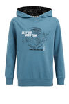 Een regular fit T-shirt van katoen met een opdruk en geribde boorden. Het model heeft een capuchon en lange mouwen.