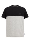 Een regular fit T-shirt van katoenmix met een ribstructuur, colourblock en een opdruk. Het model heeft een ronde hals en korte mouwen.