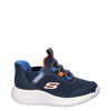 Skechers Hands Free Slip-In Bounder jongens sneaker. Deze stoere sneakers trekken je kids dankzij de Hands Free Slip-In technologie zonder problemen aan! Uitgevoerd in textiel en imitatieleer. Door de Hands Free Slip-in technologie wat bestaat uit een verstevigde hielkap en verdikte hielkraag kan de schoen hands-free aangedaan worden zonder dat de hielkap stuk gaat. Voorzien van een Air-Cooled Memoryfoam voetbed wat naast goede demping ook zorgt voor een snelle warmte en vocht afvoer.