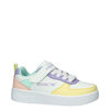 Skechers Sport Court meisjes sneakers. Deze vrolijke sneaker van Skechers kan je makkelijke combineren met verschillende outfits. Uitgevoerd in imitatieleer. Door de elastische veters en klittenbandsluiting trek je de sneakers super makkelijk aan. De binnenkant van de sneaker is van gewatteerd textiel en voelt zacht en comfortabel aan. Het voetbed heeft een zacht kussentje wat zorgt voor een goede demping tijdens het lopen. De rubberen loopzool heeft een licht profiel.