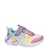 Skechers Unicorn dreams meisjes sneaker. Hoe leuk! Laat de unicorn op de zool shinen met de lichtjes! Uitgevoerd in een geweldige en schattige kleuren combinatie gemaakt van textiel. Gevoerd met textiel voor een zacht een comfortabel draaggevoel voor de gevoelige kindervoetjes. Geen gedoe met veters meer dankzij de elastieken veters en klittenband sluiting. Voorzien van een stevige zool met grof profiel voor goede grip. De aan- en uit knop vind je aan de uiteinde van het klittenband.