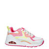 Skechers Uno Gen-1 meisjes sneaker. Hoe leuk is deze uitvoering van de beroemde Uno-sneaker van Skechers?! Uitgevoerd in imitatieleer met perforaties op de neus voor een goede warmte-afvoer. De binnenkant van de sneaker is van zacht textiel, wat fijn en zacht aanvoelt. De gewatteerde enkelkraag zorgt voor meer comfort rond de hiel en enkel. Het voetbed heeft een Air Cooled Memory Foam laag die zich aanpast aan de vorm van jouw voeten, en zorgt voor demping en ondersteuning.