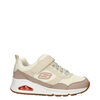 Skechers Uno Mesh Pop meisjes sneaker. Deze frisse Uno variant is ideaal voor de lente! En met de klittenbandsluiting trek je ze lekker snel aan. Uitgevoerd in een combinatie van imitatieleer en mesh. Door het opengewerkte textiel kan wamrte snel weg uit de shcoen. Tevens gevoerd met mesh-textiel en voorzien van een gewatteerde hielkap voor optimaal comfort tijdens het lopen. Bevat Skechers' memoryfoam voetbed wat ultieme demping en goede vochtafvoer biedt.