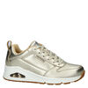 Skechers Uno Metallixs dames sneaker. Het beroemde Uno-model van Skechers doet ook mee met de metallic rage. Ben jij ook helemaal van het goud? Dan worden dit zeker jouw favoriet! Uitgevoerd in imitatieleer met perforatie op de neus en zijpanelen voor een betere doorademing. Gevoerd met comfortabel textiel en voorzien van een gewatteerde hielkap en enkelkraag wat een aangenaam draaggevoel biedt.